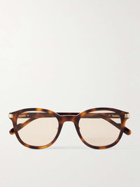 Cartier Eyewear's sunglasses have round frames made from tortoiseshell acetate for a retro feel. They're detailed with gold-tone hardware and a discreet logo. The UV-protective lenses to guard your eyes on the brightest days. Size & Fit - Frame Width: 14cm / 5.5in - Frame Height: 4.5cm / 1.8in Details & Care - Tortoiseshell acetate - Come with a case - 100% UV protection