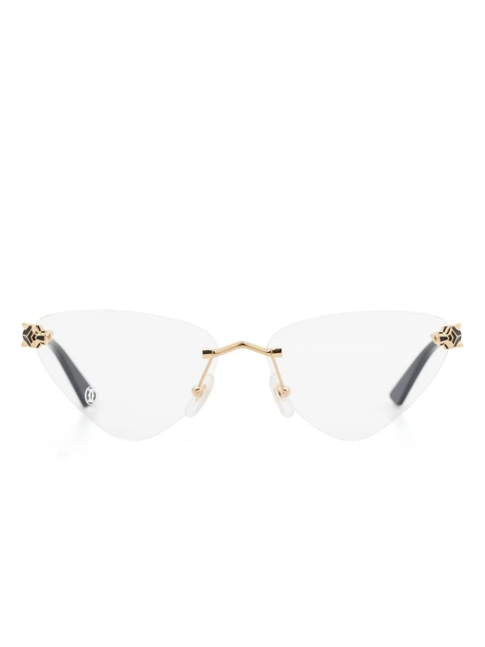 cat eye-frame metallic glasses Highlights - Gold-tone - Metal/acetate - Gold-tone hardware - Cat-eye frame - Clear lenses - Nose pads - Straight arms - Curved tips - These glasses come with a protective case. - All glasses from farfetch are sold as non-prescription frames. Made in Italy Composition Acetate 100%, Metal 100%