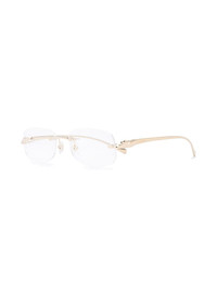 CT0058O 002 oval glasses Frames? Who needs 'em? Certainly not these Cartier Eyewear glasses. A frameless design adds a contemporary touch here. Highlights - Oval cut - Frameless design - Nose pads - Straight arms - Curved tips - Curved bridge - We know you'll look after them, but these glasses come with protection, just in case Made in France Composition Metal 100% SIZE & FIT Measurement Arm Length 5.7 in(14.5 cm) Bridge Width 0.78 in(2 cm) Lens Diameter 2.04 in(5.2 cm) Total Width 4.92 in(12.5 cm) Washing instructions KERING EYEWEAR