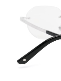frameless two-tone glasses Highlights - Silver-tone - Titanium - Frameless design - Nose pads - Straight arms - Pointed tip - All glasses from farfetch are sold as non-prescription frames. Imported Composition Titanium 100% SIZE & FIT Measurement Arm Length 5.7 in(14.5 cm) Bridge Width 0.7 in(1.8 cm) Lens Diameter 2.04 in(5.2 cm) WIDTH 5.31 in(13.5 cm)