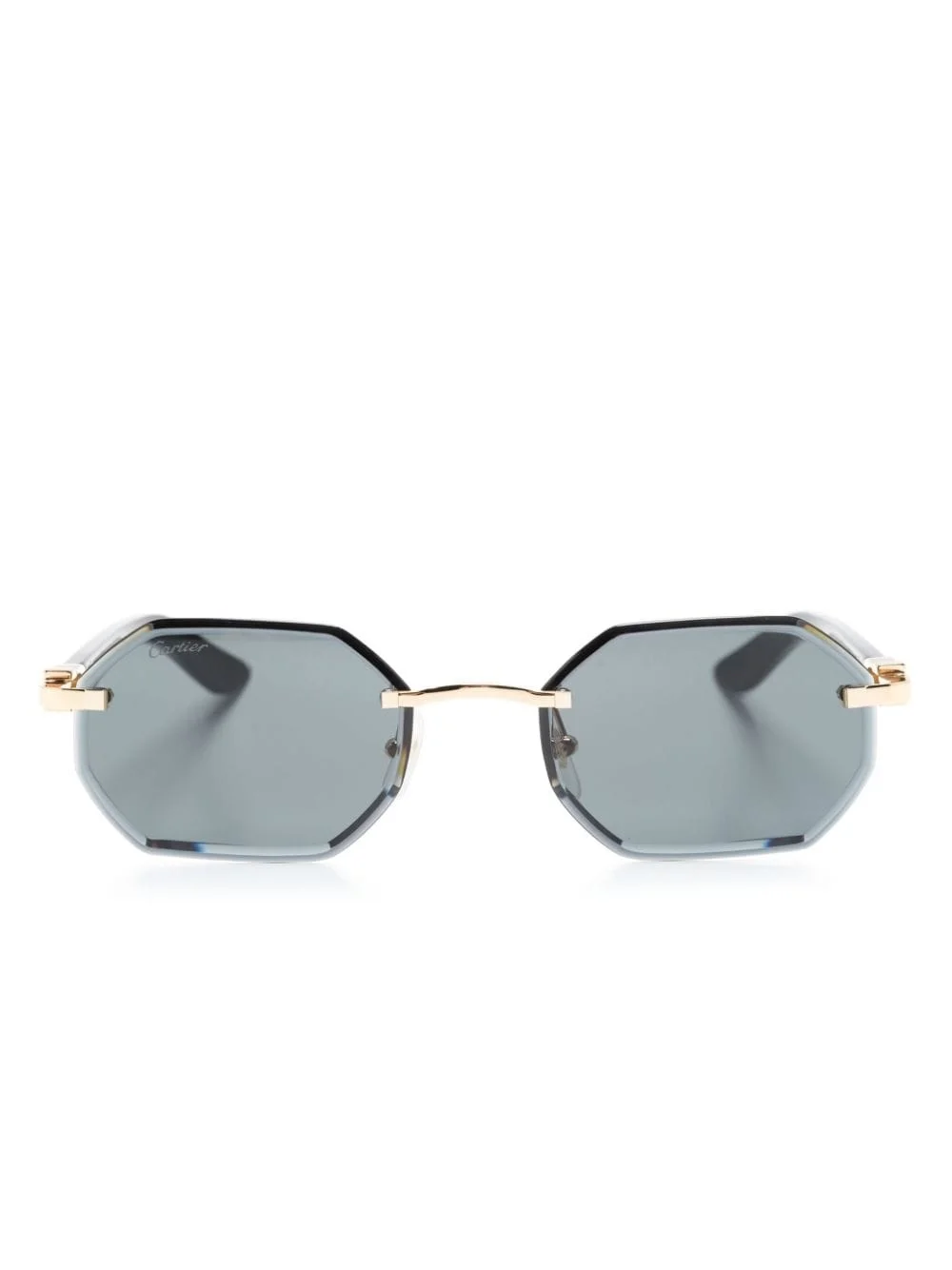 geometric rimless sunglasses Highlights - Charcoal grey - Geometric frame - Grey tinted lenses - Uv-protective lenses - Rimless lenses - Engraved logo - Straight arms - Curved tips - These glasses come with a protective case. Made in France Composition Other Materials 100% SIZE & FIT Measurement Lens Diameter 2.08 in(5.3 cm) Bridge Width 0.7 in(1.8 cm) Arm Length 5.7 in(14.5 cm)