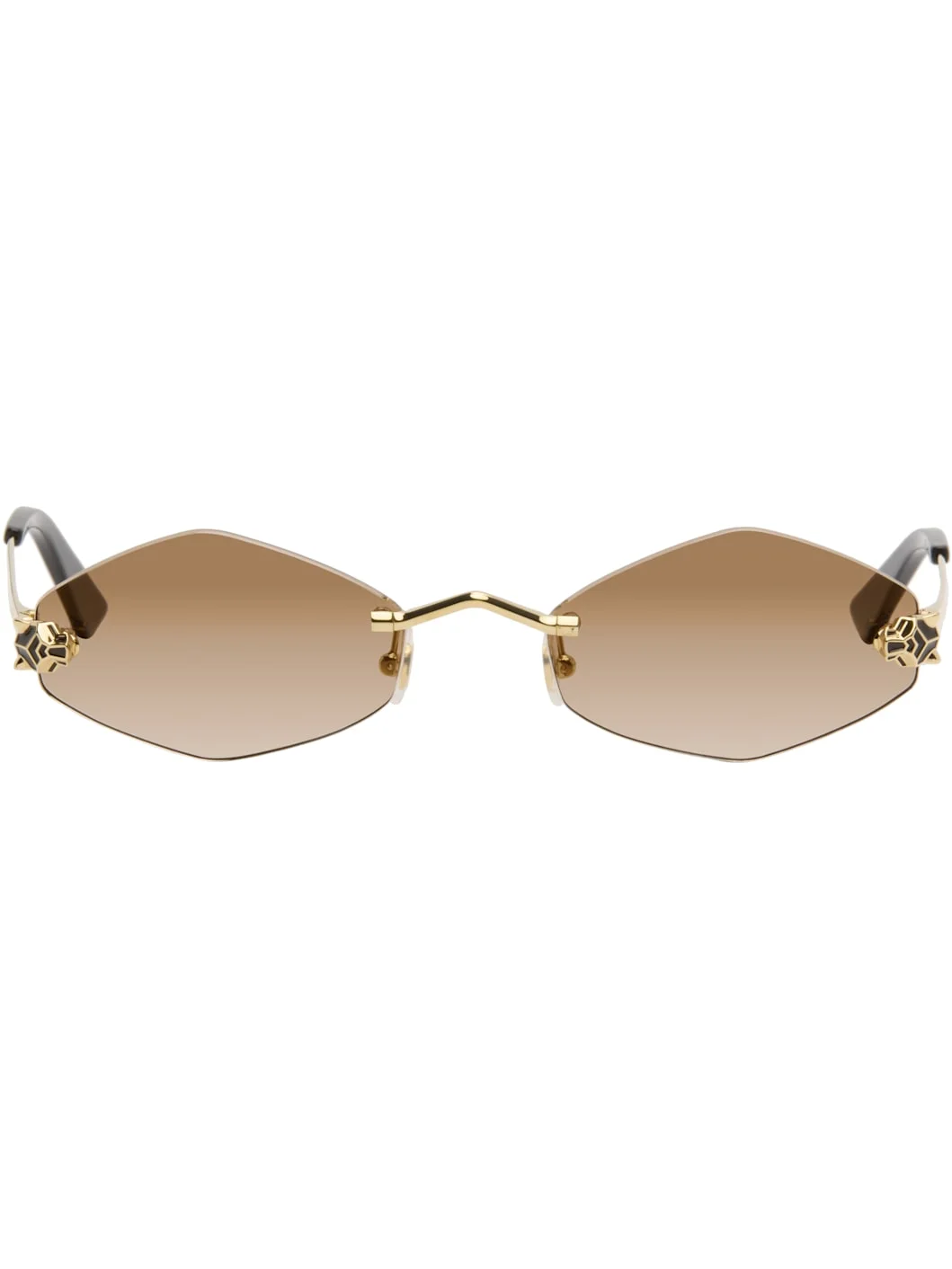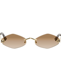 Hexagonal rimless metal-frame sunglasses. · Brown lenses · 100% UVA/UVB protection, category 2 · Adjustable rubber nose pads · Graphic hardware at face · Logo engraved at temples · Black acetate trim at temple tips · Includes case · Size: 55.20 140 Supplier color: Gold/Gold/Brown Metal. Made in Italy 252346M134032