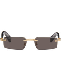 Rectangular rimless transparent acetate-frame sunglasses. · Gray lenses · 100% UVA/UVB protection, category 3 · Logo etched at lens · Adjustable rubber nose pads · Core wires at temples · Inset logo at temple tips · Includes case · Gold-tone hardware · Size: 55.18 145 Supplier color: Gold/Gray/Gray Acetate. Made in France 261346M134000