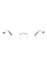 logo-plaque cat-eye frame glasses Highlights - Silver-tone - Metal - Cat-eye frame - Clear lenses - Silver-tone logo plaque - Nose pads - Straight arms - Curved tips - These glasses come with a protective case. - All glasses from farfetch are sold as non-prescription frames. Made in Italy Composition Metal (Other) 80%, Acetate 20% SIZE & FIT Measurement Arm Length 5.51 in(14 cm) Bridge Width 0.59 in(1.5 cm) Lens Diameter 2.24 in(5.7 cm) WIDTH 5.51 in(14 cm)