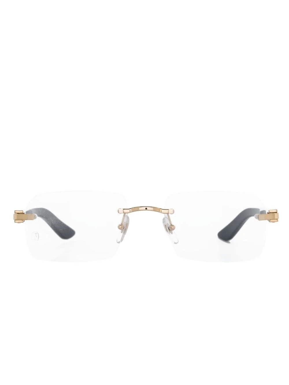logo-plaque rectangle-frame glasses Highlights - Black - Metal/cattle horn - Clear lenses - Metallic effect - Nose pads - Rectangle frame - Mirrored lenses - Straight arms - Curved tips - These glasses come with a protective case. - All glasses from farfetch are sold as non-prescription frames. Made in France Composition Metal 100%, Cattle Horn 100% SIZE & FIT Measurement Arm Length 5.7 in(14.5 cm) Bridge Width 0.74 in(1.9 cm) Lens Diameter 2.2 in(5.6 cm) Total Width 5.7 in(14.5 cm)
