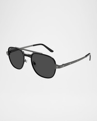 - Cartier "CT0477SM" aviator sunglasses with metal frames - Lens/bridge/temple (in mm): - 56-21-145 - Solid-color lenses - Right lens logo script - Double-nose bridge - Adjustable nose pads - Engraved temple logo - Curved, capped temple tips - Metal - 100% UVA/UVB protection - Made in France - Proposition 65 warning for California residents