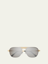 Cartier "CT0532SM" aviator sunglasses in two-tone metal Lens/bridge/temple (in mm): 58-17-145 Solid-color lenses Right lens logo script Adjustable nose pads Engraved logo on the temples Curved, capped temple tips Metal Made in France Proposition 65 warning for California residents Online Inquiries: BGS21_NCWR0| Store Inquiries: #4966355