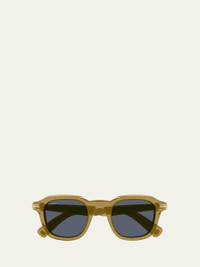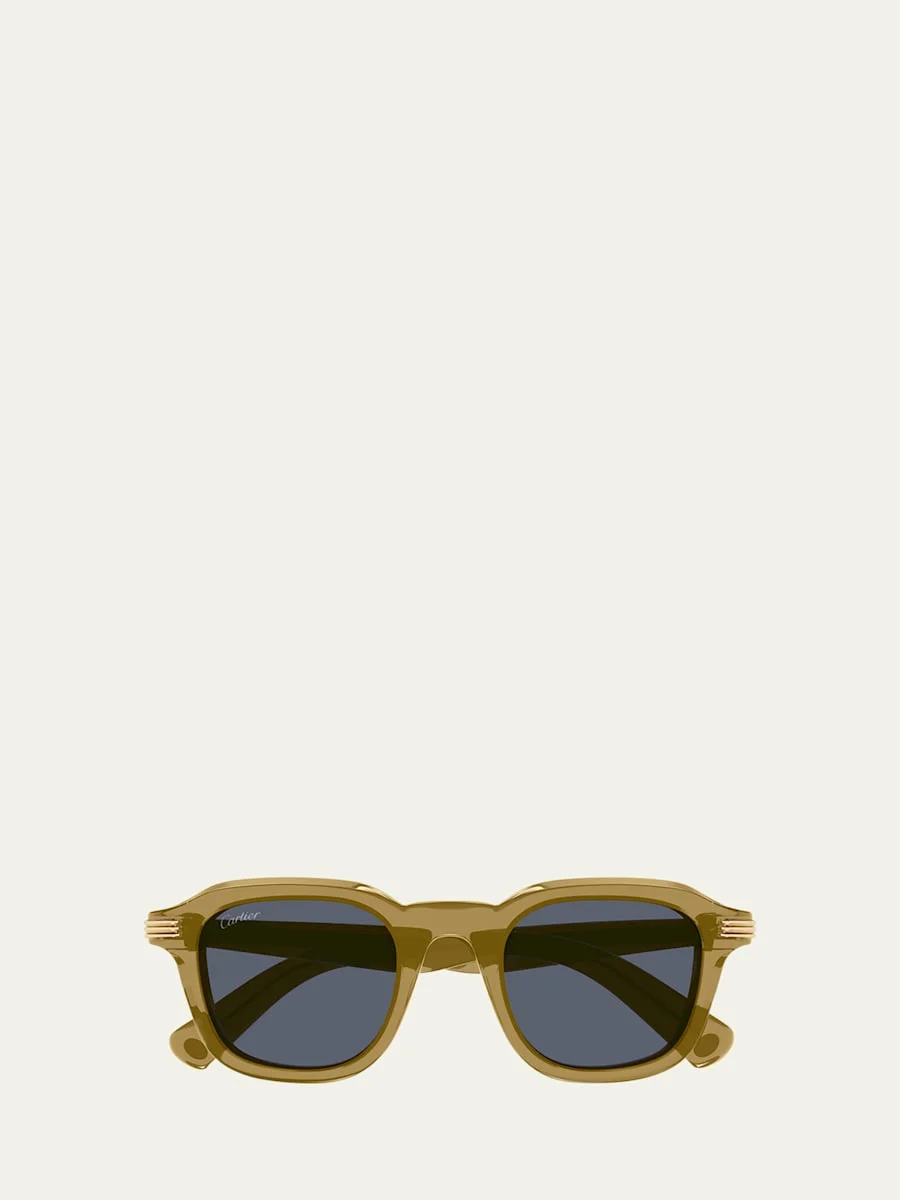 Cartier "CT0536S" rectangle sunglasses in recycled acetate Lens/bridge/temple (in mm): 49-23-145 Solid-color lenses Right lens logo script Saddle nose bridge Double C hinge detail Tapered arms Curved temple tips Acetate 100% UVA/UVB protection Made in Italy Proposition 65 warning for California residents Online Inquiries: BGS21_NCXFC| Store Inquiries: #4971270