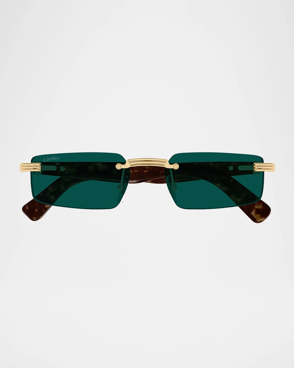 - Cartier "CT0537SM" rectangle sunglasses in metal - Lens/bridge/temple (in mm): - 55-18-145 - Solid-color lenses - Right lens logo script - Adjustable nose pads - C-hinge accent - Tapered arms - Curved temple tips - Metal - 100% UVA/UVB protection - Made in France - Proposition 65 warning for California residents