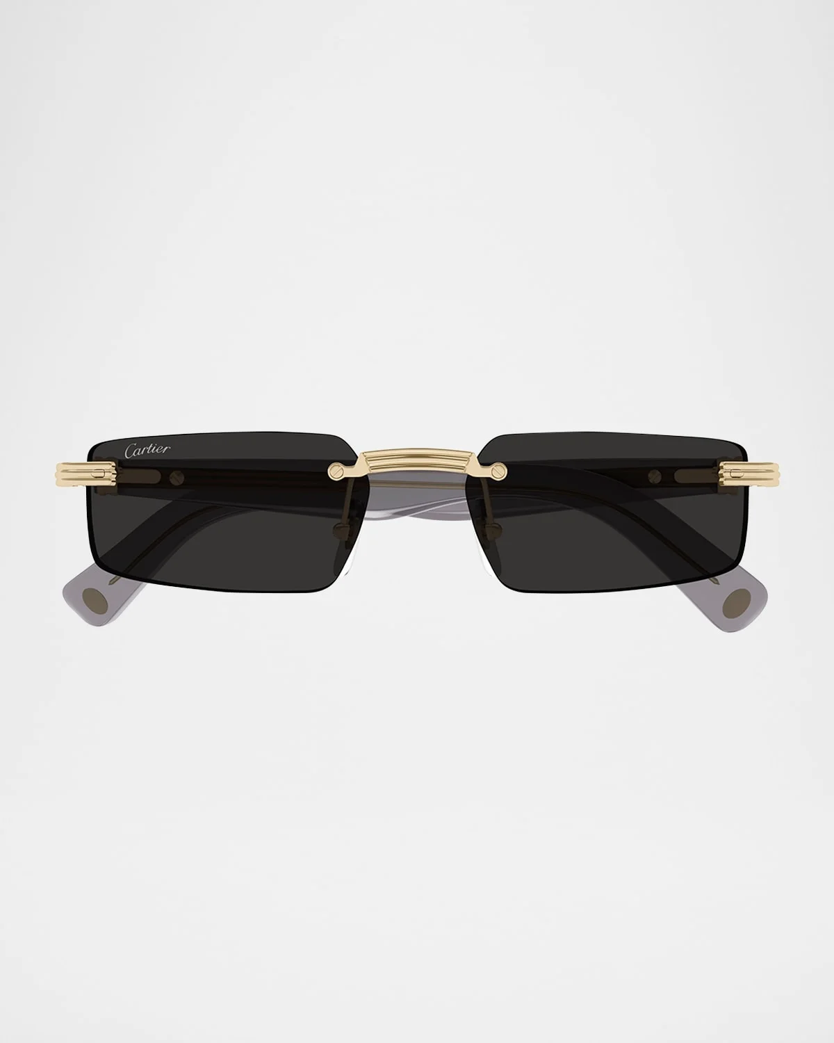 - Cartier "CT0537SM" rectangle sunglasses in metal - Lens/bridge/temple (in mm): - 55-18-145 - Solid-color lenses - Right lens logo script - Adjustable nose pads - C-hinge accent - Tapered arms - Curved temple tips - Metal - 100% UVA/UVB protection - Made in France - Proposition 65 warning for California residents