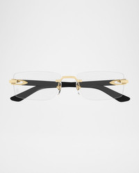 The Cartier eyeglasses showcase the signature Double Chinges in a luxurious goldtone finish Eye/bridge/temple (in mm): 5619145 Clear, nonoptical demo lenses (replacement recommended) Adjustable nose pads Curved temple tips Metal Made in France