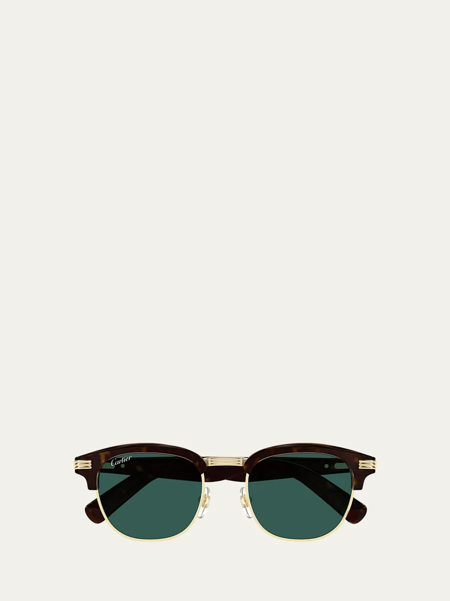 Cartier two-tone sunglasses Eye/bridge/temple (in mm): 52-21-145 Eyewear style: Oval Adjustable nose pads Notched arms Recycled acetate/metal/bio nylon 100% UVA/UVB protection Made in Italy Proposition 65 warning for California residents Online Inquiries: BGS21_NCFJQ| Store Inquiries: #4873881