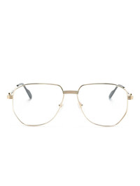 pilot-frame glasses Highlights - Gold-tone - Metal - Pilot frame - Clear lenses - Nose pads - Sculpted arms - Curved tips - All glasses from farfetch are sold as non-prescription frames. - These glasses come with a protective case. Made in Italy Composition Metal 100%, Acetate 100% SIZE & FIT Measurement Arm Length 5.7 in(14.5 cm) Bridge Width 0.59 in(1.5 cm) Lens Diameter 2.28 in(5.8 cm) Total Width 5.7 in(14.5 cm)