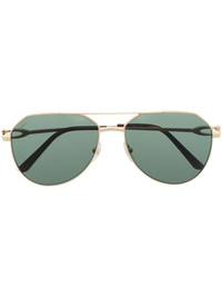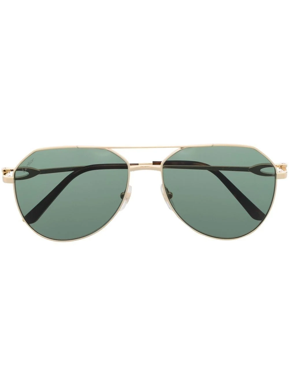 pilot-frame sunglasses gold-tone green tinted lenses UV-protective lenses pilot frame nose pads straight arms These glasses come with a protective case. Made in Italy Composition Metal 100% SIZE & FIT Measurement Arm Length 5.7 in(14.5 cm) Bridge Width 0.62 in(1.6 cm) Lens Diameter 2.32 in(5.9 cm) Total Width 5.78 in(14.7 cm)