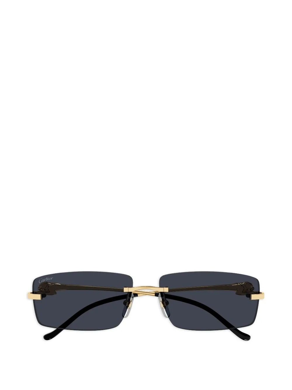 rectangle-shape sunglasses Named after the signature panthere plaque placed on the temples, these Panthere de Cartier sunglasses from Cartier Eyewear are designed with a rimless rectangle frame. They're fitted with blue tinted lenses and gold-tone metal arms. Highlights - Gold-tone - Rimless lenses - Tinted lenses - Rectangle frame - Nose pads - These glasses come with a protective case. Made in France Composition Metal 100% SIZE & FIT Measurement Arm Length 5.51 in(14 cm) Bridge Width 0.59 in(1.5 cm) Lens Diameter 2.28 in(5.8 cm) Total Width 5.59 in(14.2 cm)
