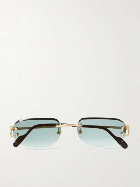 Just like its impeccable watches, Cartier Eyewear's sunglasses are crafted with immaculate precision. This 'Signature C' pair has been handcrafted in the maison's atelier from polished gold-tone metal and is fitted with rimless rectangular lenses. Size & Fit - Frame Width: 14cm / 5.5in - Frame Height: 4cm / 1.6in Details & Care - Gold-tone metal - Come with a case - 100% UV protection