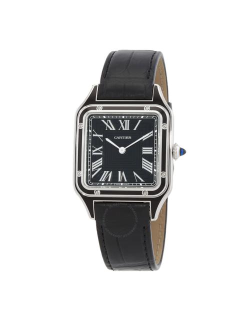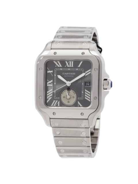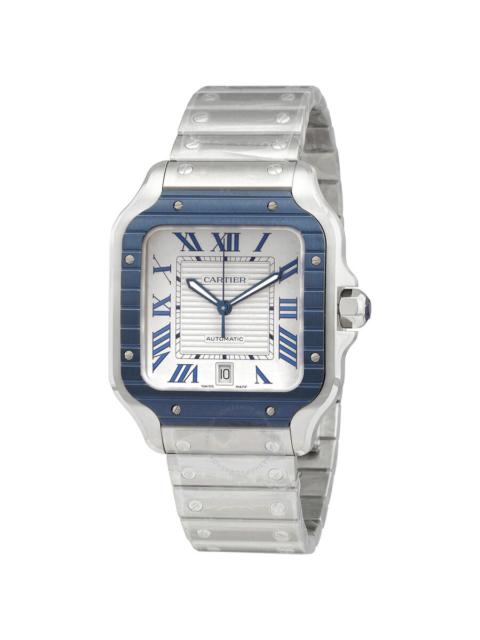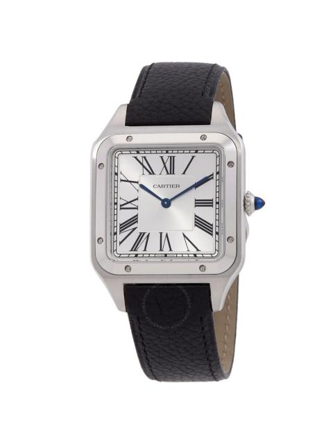 Stainless steel case with a stainless steel bracelet. Fixed stainless steel bezel. Silvered opaline dial with blued-steel sword-shaped hands and black Roman numeral hour markers. Minute markers around an inner ring. Dial Type: Analog. Cartier calibre 1847 MC automatic movement, containing 23 Jewels, bitting at 28800 vph, and has a power reserve of approximately 42 hours. Scratch resistant sapphire crystal. Blue cabochoon crown. Solid case back. Square case shape. Case dimensions: 35.1 mm x 41.9 mm. Case thickness: 8.83 mm. Band width: 16 mm. Deployment clasp. Water resistant at 100 meters / 330 feet. Functions: hour, minute, second. Additional Info: interchangeable calfskin leather strap. Santos Series. Luxury watch style. Watch label: Swiss Made. Cartier Santos Silvered Opaline Dial Men's Watch WSSA0029. INFORMATION Brand: Cartier Series: Santos Collection Name: Santos Gender: Mens Model: WSSA0029 Watch Label: Swiss Made Movement: Automatic Engine: Cartier Calibre 1847 MC Power Reserve: 42 hours CASE Case Size: 35.1 mm x 41.9 mm Case Thickness: 8.83 mm Case Material: Stainless Steel Case Shape: Square Case Back: Solid BAND Band Material: Stainless Steel Band Type: Bracelet Band Color: Silver-tone Band Width: 16 mm Clasp: Deployment DIAL Dial Color: Silvered Opaline Type: Analog Crystal: Scratch Resistant Sapphire Hands: Blued-steel Sword-shaped Dial Markers: Black Roman Numeral Second Markers: Minute Markers around an inner ring Bezel: Fixed Bezel Color: Silver-tone Bezel Material: Stainless Steel Crown: Blue Cabochoon FEATURES Water Resistance: 100 meters / 330 feet Functions: Hour, Minute, Second Watch Features: Stainless Steel, Leather, Analog ADDITIONAL INFO Watch Style: Luxury Warranty: 2 Year Jomashop Warranty UPC Code: 7613375234937 Additional Info: Interchangeable calfskin leather strap Jomashop Sku: CRTWSSA0029 Department: Watches Category: Watches