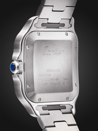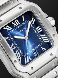 Aviator Alberto Santos-Dumont was behind the invention of the first pilot's watch - he asked Louis Cartier to create something he could glance at on his wrist during an era where pocket watches were ubiquitous. Designed with the same squared face and exposed screws along the bezel, this stainless steel reference has been engineered in Switzerland with a calibre 1847 MC automatic movement and striking green dial. The 'SmartLink' adjustment system makes it easy to swap out the bracelet for the coordinating alligator strap. For warranty information, please refer to details & care Details & Care Movement - Swiss-made calibre 1847 MC automatic movement with 40-hour power reserve - 23 jewels, 28,800 Vph Functions - Hour, minute and second hands - Date window Dial - Blue dial - Luminescent, stainless steel sword-shaped hands, polished steel Roman numerals and markers - Case - Stainless steel case - Blue spinel crown for time adjustments and manual winding - Sapphire glass crystal - Engraved case back - Folding clasp-fastening steel bracelet; additional buckle-fastening blue Alligator strap Specifications - Case width: 39.8mm; case thickness: 9.38mm - Water resistance: 10 bar - Comes in a presentation box - Alligator: USA - Reference number: WSSA0071 We offer a two-year warranty for all working parts and manufacturing faults for luxury watches. For more information, contact one of our experts by emailing watches@mrporter.com