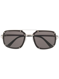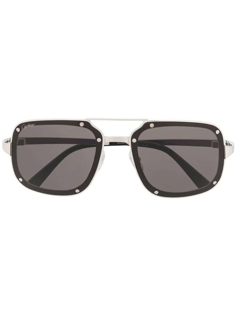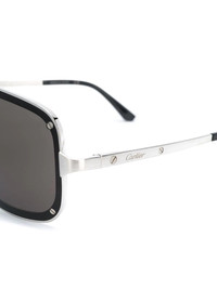 Santos de Cartier square-frame sunglasses We know life isn't always smooth sailing but sometimes the smallest things can make it better. Designed with a square frame and decorated with the brand's signature screw detailing, these black and silver-tone Santos de Cartier sunglasses from Cartier Eyewear are the perfect accessory to help you look on the bright side in style. Feeling better yet? Featuring tinted lenses, 100% UV protection, a logo decal on the lens, a double nose bridge, nose pads, a brand logo on external arm and straight arms with curved tips. This item comes with a protective case. Imported Composition Titanium 100% SIZE & FIT Measurement Arm Length 5.51 in(14 cm) Bridge Width 0.66 in(1.7 cm) Lens Diameter 2.28 in(5.8 cm) Total Width 5.82 in(14.8 cm)