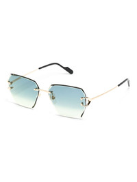 Signature C de Cartier geometric-frame sunglasses Highlights - Turquoise blue-green - Metal - Rimless lenses - Geometric frame - Gradient lenses - Nose pads - Sculpted arms - Curved tips - These glasses come with a protective case. Made in Italy Composition Metal (Other) 90%, Acetate 10% SIZE & FIT Measurement Arm Length 5.7 in(14.5 cm) Bridge Width 0.62 in(1.6 cm) Lens Diameter 2.28 in(5.8 cm) Total Width 5.51 in(14 cm)