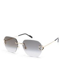 Signature C rimless sunglasses Cartier Eyewear's Signature C sunglasses showcase the brand's refined aesthetic. This style is constructed in a rimless design with a hexagonal shape. Grey-tinted gradient lenses and gold-tone titanium temples complete this sophisticated accessory. Highlights - Gold-tone - Titanium - Lens decal - Rimless lenses - Grey tinted gradient lenses - Nose pads - Straight arms - Curved tips - These glasses come with a protective case. Made in Italy Composition Titanium 100% SIZE & FIT Measurement Arm Length 5.7 in(14.5 cm) Bridge Width 0.66 in(1.7 cm) Lens Diameter 2.28 in(5.8 cm)