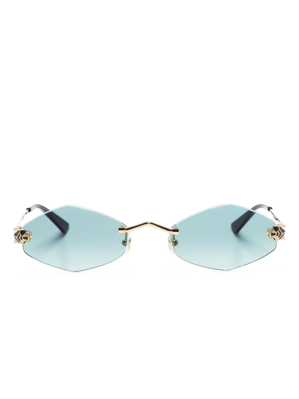 cat-eye frame sunglasses Highlights - Gold-tone - Metal - Acetate - Blue tinted lenses - Geometric frame - Uv-protective lenses - Gold-tone logo plaque - Signature tiger head motif - Straight arms - Curved tips - These glasses come with a protective case. Made in Italy Composition Acetate 50%, Metal (Other) 50% SIZE & FIT Measurement Arm Length 5.51 in(14 cm) Bridge Width 0.78 in(2 cm) Lens Diameter 2.16 in(5.5 cm) WIDTH 5.39 in(13.7 cm)