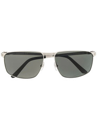 tinted rectangle-frame sunglasses silver tinted lenses rectangle frame raised bridge straight arms curved tips These glasses come with a protective case. Made in France Composition Metal (Other) 90%, Acetate 10% SIZE & FIT Measurement Arm Length 5.51 in(14 cm) Bridge Width 0.62 in(1.6 cm) Lens Diameter 2.36 in(6 cm) Total Width 5.51 in(14 cm)