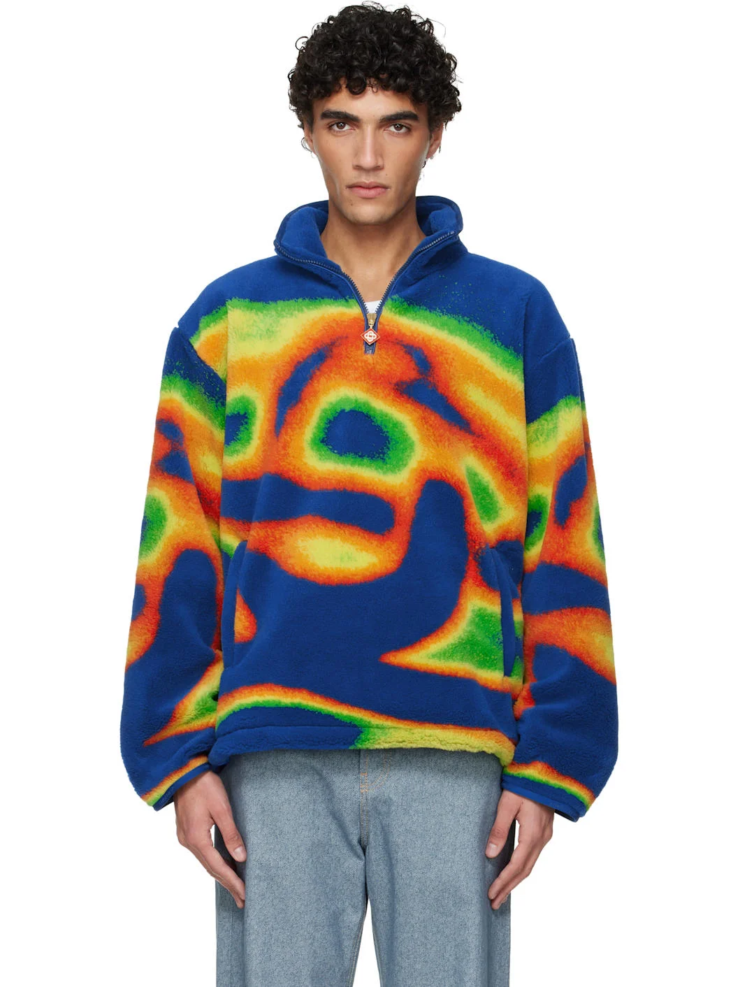 Fleece jacket. · Graphic pattern printed throughout · Stand collar · Logo-woven elasticized trim at collar and cuffs · Half-zip closure · Zip pockets at front · Bungee-style drawstring at hem · Full satin lining Supplier color: Heatmap Body: 100% polyester. Trim: 49% polyester, 37% elastane, 14% nylon. Lining: 65% viscose, 35% polyester. Made in Italy 261195M180000