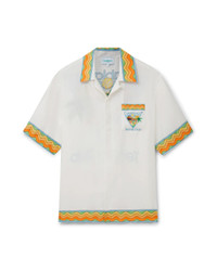 The Afro Cubism Tennis Club silk shirt is a short-sleeve printed style inspired by the warmth of Nigeria’s traditional architecture; the beauty of the traditional and organic art is represented as a landscape while keeping our traditional layout - the palm tree, the perspective of the building and a tennis court. Completed with a front button closure, Cuban collar, a breast pocket and contrast detail on the cuffs, collar and hem. Printed silk twill fabric 100% silk Afro Cubism Tennis Club print Specialised dry clean only Made in Italy Fits true to size, take your regular size The model is 187cm/6’1 and is wearing a size M