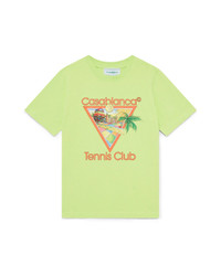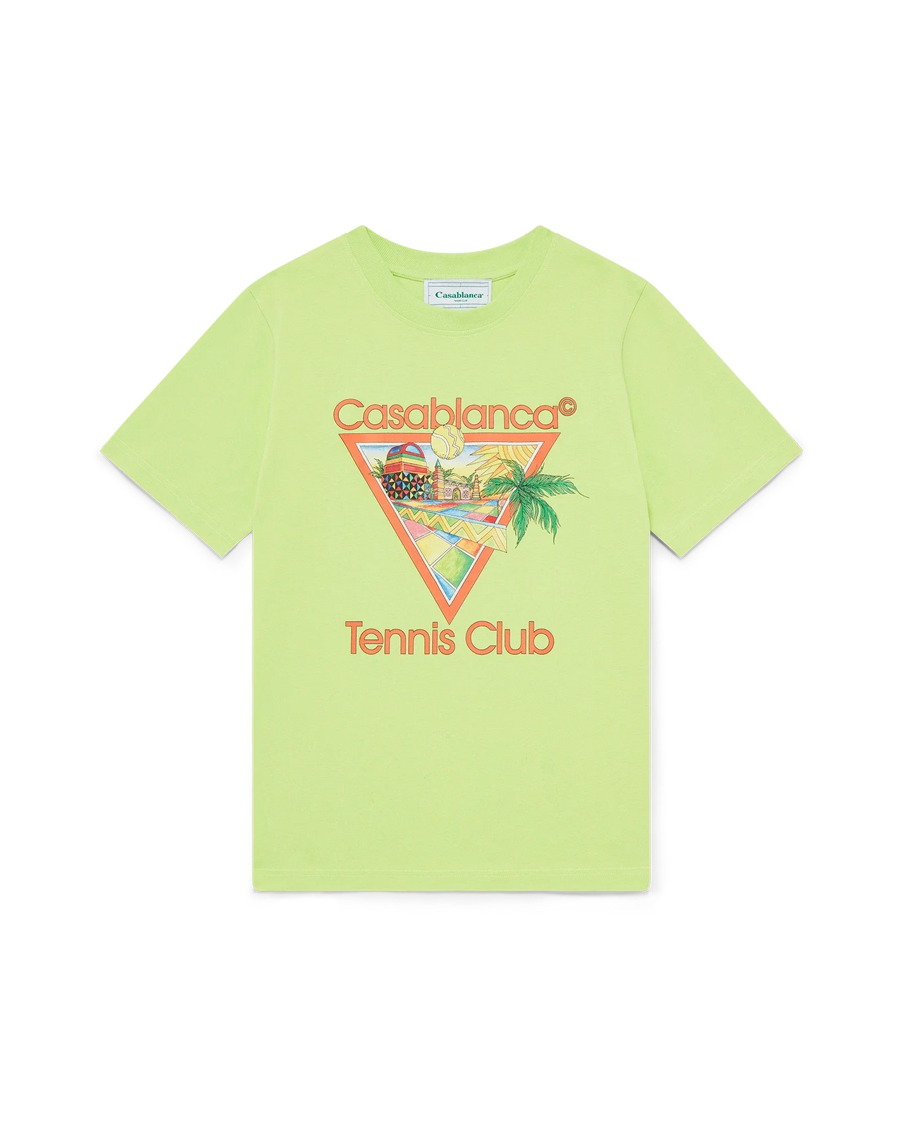 The Afro Cubism Tennis Club t-shirt is a short-sleeve printed design featuring the house's signature artwork reinterpreted this season with a take on the warmth of Nigeria’s traditional architecture, the beauty of the traditional and organic art represented as a landscape while keeping our traditional layout of the palm tree, the perspective of the building and a tennis court. Crafted from an organic cotton fabric and completed with a classic crew neck. 100% organic cotton Colour: green Delicate machine wash Made in Portugal Fits true to size, take your regular size