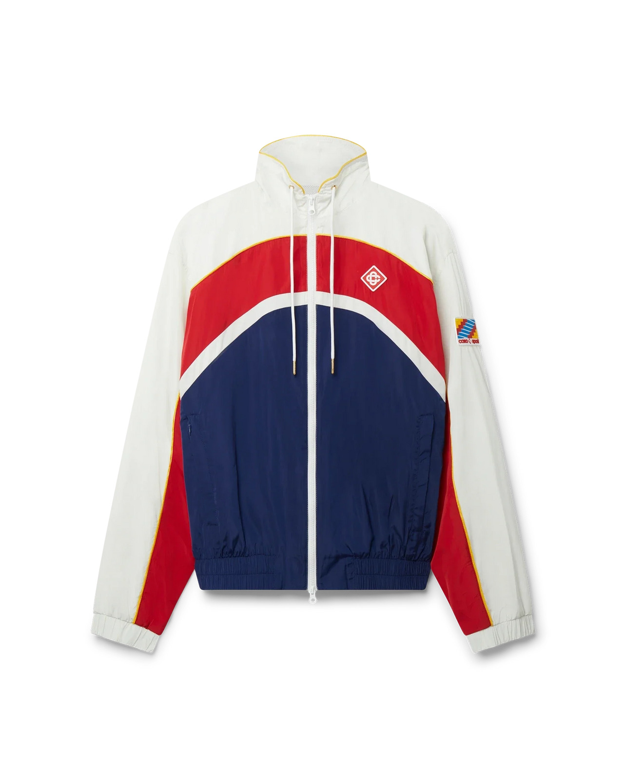 The Arch Panelled Shell Track Jacket is a nostalgic sporting jacket crafted from a polyester taffeta fabric in white, red and navy-toned panels. Completed with a zip-up fastening, gold-tipped drawstrings and side pockets. Designed for a classic fit with the Casablanca Paris diamond monogram logo embroidered on the left chest. 100% polyester Colour: white, red and navy Specialised dry clean only Fits true to size, take your regular size The model is 187cm/6’1 and is wearing a size M