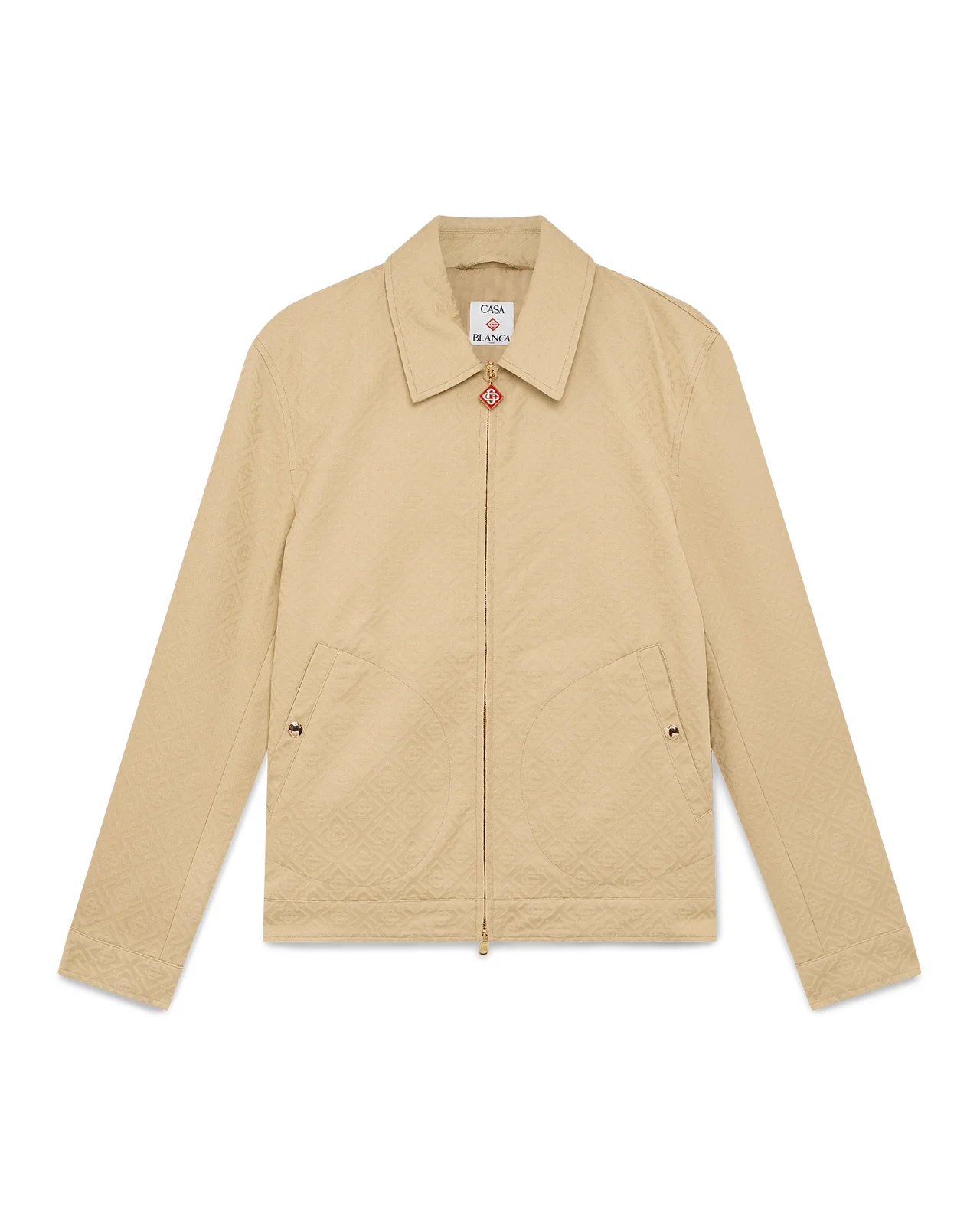 The cotton monogram jacquard jacket is a long-sleeve blouson design crafted from cotton jacquard fabric. Completed with zip closure, a funnel collar, gold-plated hardware and slanted flap pockets. - Cotton jacquard fabric - Main: 100% cotton - Lining: 100% viscose - Colour: beige - Specialised dry clean only - Made in Italy - The model is 187cm/6'1 and is wearing a size M