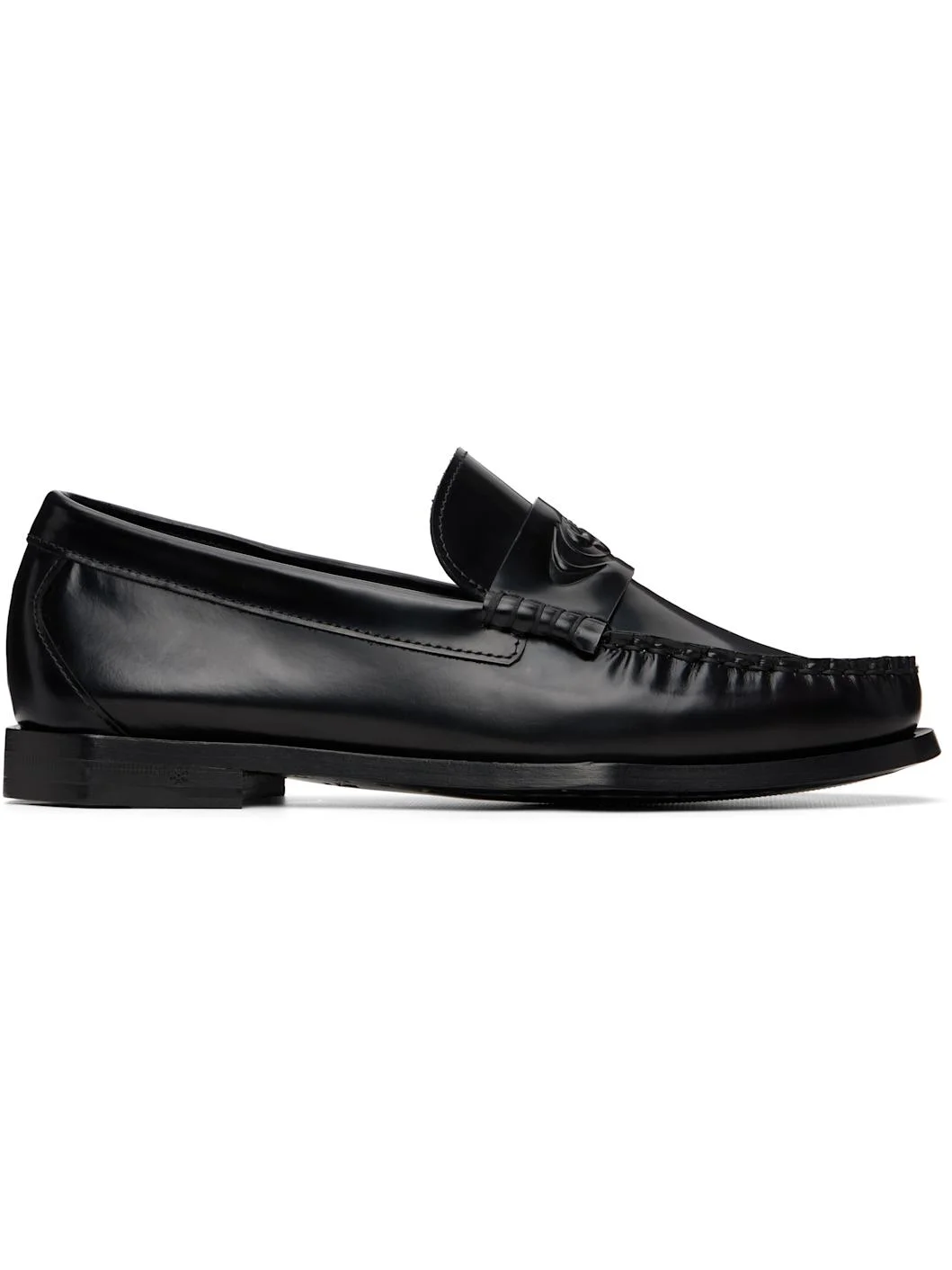 Polished calfskin loafers. · Moc toe · Logo-embossed strap at vamp · Blanket stitching at sides · Buffed leather lining · Stacked leather heel with rubber injection · Leather sole Supplier color: Black Upper: calfskin. Sole: leather, rubber. Made in Portugal 261195M231001