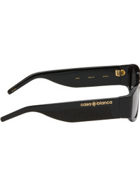 Rectangular acetate-frame sunglasses. · Gray lenses · 100% UVA/UVB protection · Integrated nose pads · Logo stamp at temples · Includes case · Size: 57.16 140 Supplier color: Black Acetate. Made in Japan 252195M134000