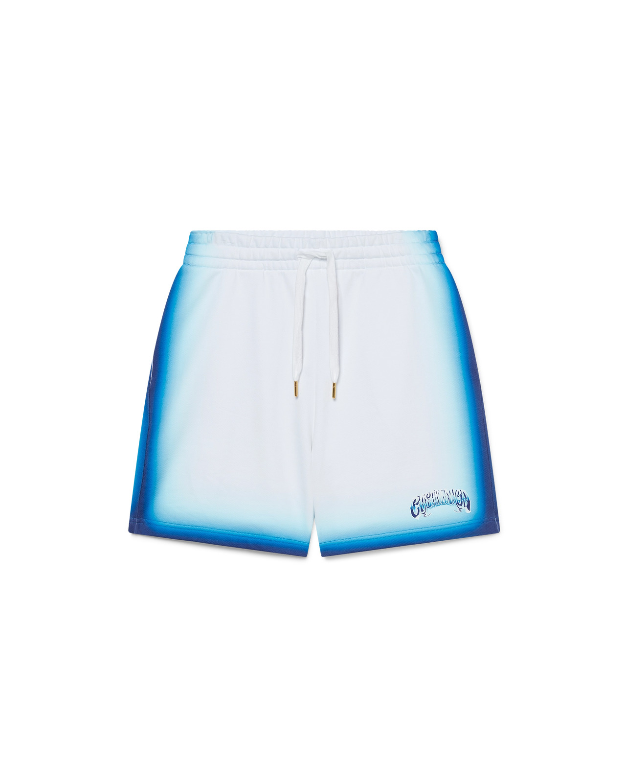 The Blue Fade sweatshorts are a sportswear design crafted from organic cotton fabric and feature hand-drawn typography of the Casablanca logo, inspired by the gothic typeface used in Chicano tattoos. Completed with an elasticated waistband, a gold-tipped drawstring fastening, in-seam side pockets and a patch back pocket. - Cotton loopback jersey fabric - 100% organic cotton - Blue Fade - Delicate machine wash - Made in Portugal - The model is 186cm/6'1 and is wearing a size M