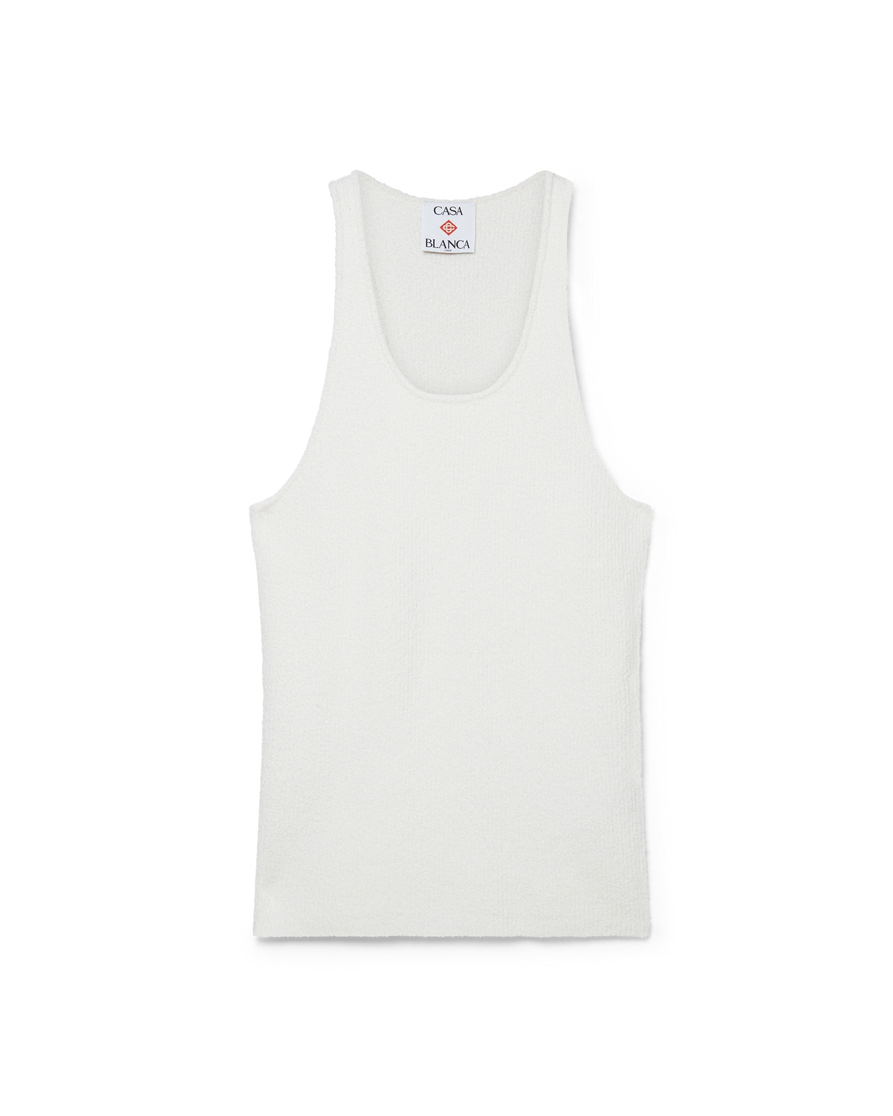 The boucle rib vest is a sleeveless textured design crafted from a boucle cotton blend fabric. Completed with a scoop neck and a racer back with the house's signature diamond logo. - Boucle cotton blend fabric - Main: 65% cotton 35% polyamide - Applique: 95% viscose 5% polyester - Colour: multicolour - Specialised dry clean only - The model is 185cm/6'1 and is wearing a size M