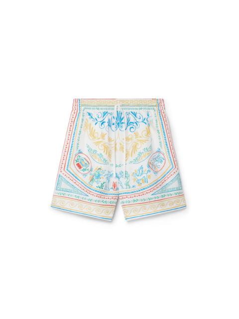The La Deesse Du Stade shorts are a gradient printed design crafted from a monogram silk satin fabric featuring the house's seasonal artwork - paying homage to the Olympics. Completed with an elasticated waistband with drawstring fastening, in-seam side pockets, a back pocket, and multicolour striped detail on the hem and back pocket. Printed silk satin fabric 100% silk satin Lining: 100% polyester La Deesse Du Stade print multicolour Specialised dry clean only Made in Italy Fit true to size, take your regular size The model is 187cm/6’1 and is wearing a size M