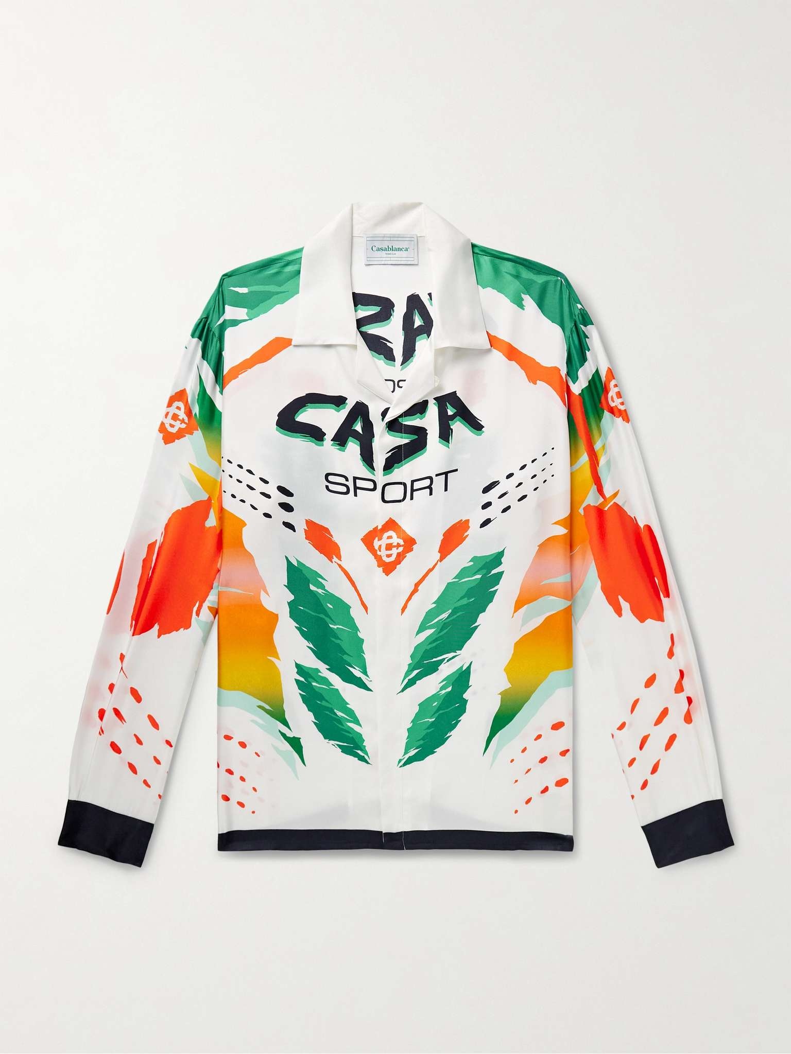 Casablanca's shirt is modelled after classic motocross jerseys. It's made from silk-twill printed with the brand's 'Casa Sport' logo and abstract motifs - fans of the label will recognise its signature laurel leaves. Undo a few buttons near the collar for a relaxed take. Size & Fit - Fits true to size. Take your normal size - Designed for a relaxed fit - Lightweight, non-stretchy fabric - Model is shown wearing a M - Model measures: chest 38"/ 96cm, height 6'1"/ 185cm Details & Care - Multicoloured silk-twill - Button fastenings - 100% silk - Dry clean