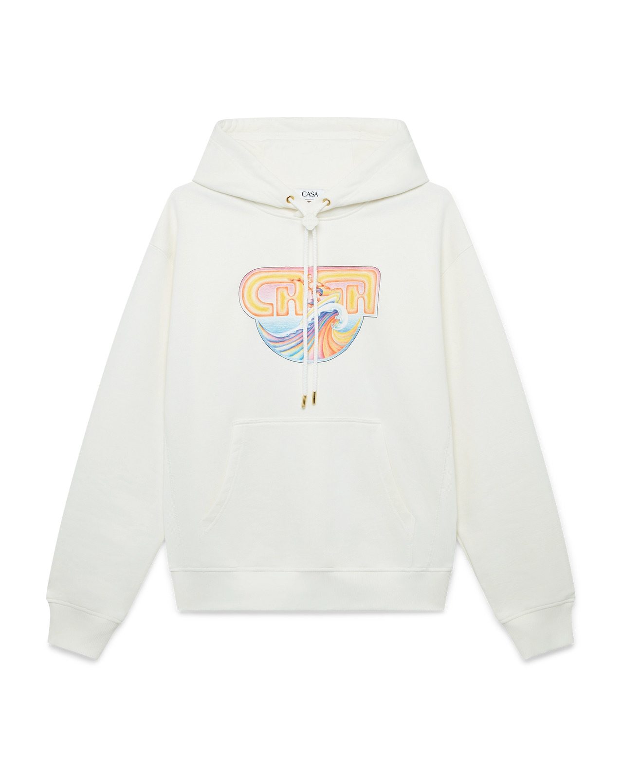 The Casa Surf hooded sweatshirt is a long-sleeve printed design crafted from organic cotton fabric and features seasonal artwork inspired by vintage sun-faded surfboards of the '70s. Completed with a hood, gold-tipped drawstring fastening, a kangaroo pocket, and rib cuffs and hem. - Cotton loopback jersey fabric - 100% organic cotton - Colour: white - Delicate machine wash - Made in Portugal - The model is 187cm/6'1 and is wearing a size M
