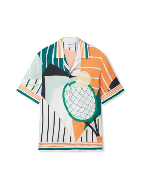 The Casa Way silk shirt features a print of the house's orange pyramid iconographic artwork with tennis rackets and floral details reinterpreted for this season. Finished with a Casablanca branded label and contrast detailing on the collar, cuffs, hem and breast pocket - designed for a classic Fits. - Printed silk twill fabric - 100% silk - Specialised dry clean only - Made in Italy - Fits true to size, take your regular size
