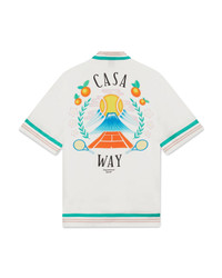 The Casa Way silk short-sleeve shirt is a printed design featuring the house's signature artwork inspired by nature, architecture and tennis - crafted from silk twill fabric. Completed with a Cuban collar, hidden button closure, interlocking CC logo corozo buttons, and stripe edge detail on the collar, cuffs, and hem. - Printed silk twill fabric - 100% silk - Casa Way print multicolour - Specialised dry clean only - Made in Italy - Relaxed fit - The model is 187cm/6'1 and is wearing a size M