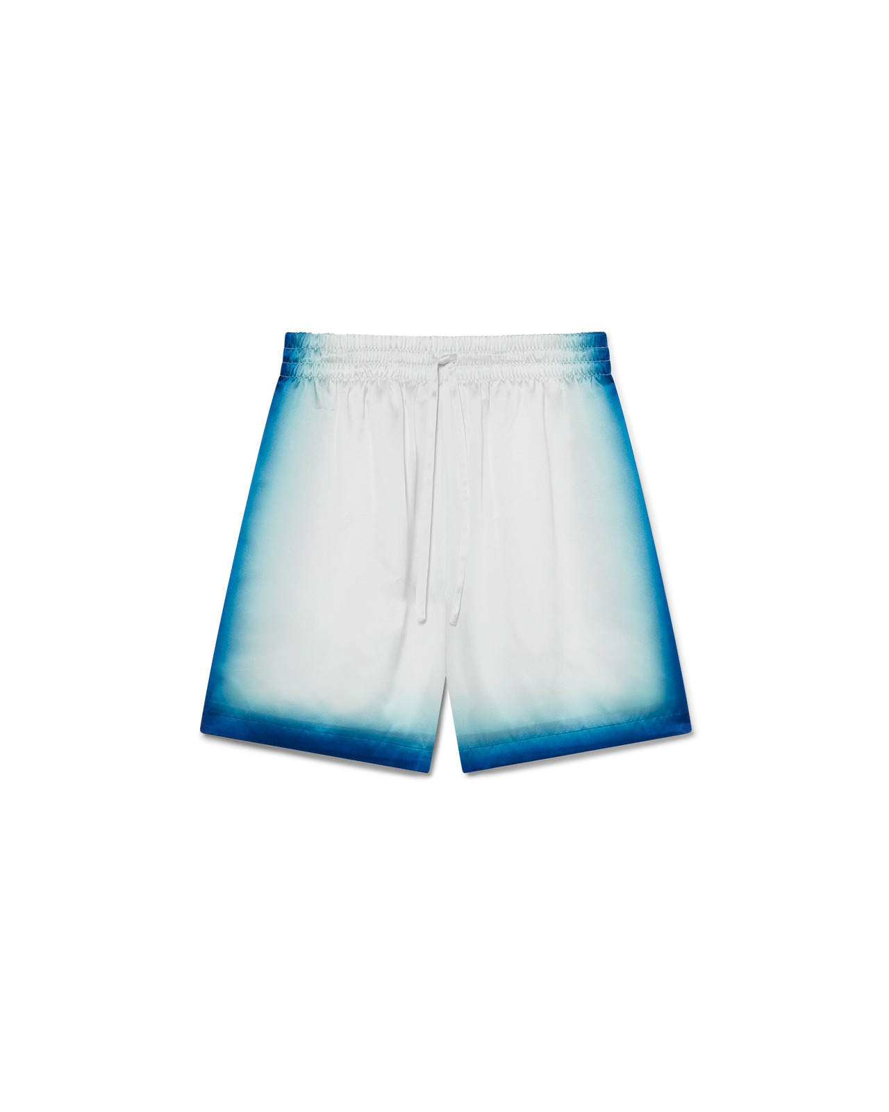 The Casa Way Skate silk shorts are a classic design crafted from silk satin fabric featuring the season's Casa Way Skate artwork, inspired by classic 70s California skate insignia with a fade-out frame. Completed with an elasticated waistband, drawstring fastening, in-seam side pockets, and a back patch pocket. - Faded silk satin fabric - Main: 100% silk - Lining: 100% polyester - Colour: blue fade - Specialised dry clean only - Made in Italy - The model is 185cm/6'1 and is wearing a size M