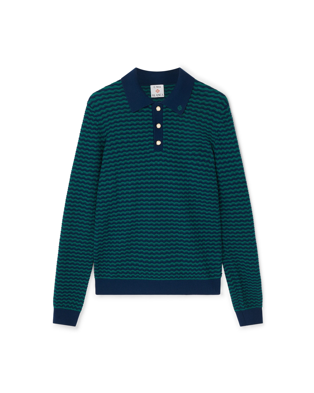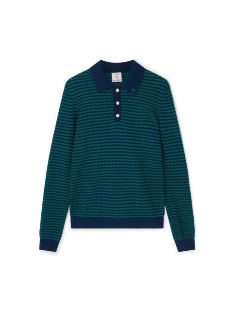 The mini wave polo shirt is a classic long-sleeve design crafted from merino wool fabric. Completed with rib collar, cuffs, hem, placket, and signature gold rim pearl buttons. - Merino wool fabric - 100% merino wool - Colour: navy/green - Specialised dry clean only - Model is 185cm/6'1 and is wearing a size M