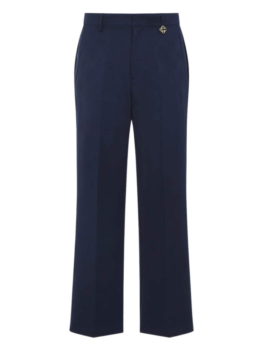 monogram-pattern charm-detail trousers Highlights - Navy blue - Monogram pattern - Gold-tone hardware - Belt loops - Side seam pockets - Back welt pockets Made in Italy Composition Cotton 100% Washing instructions Read Manufacturer Guidelines