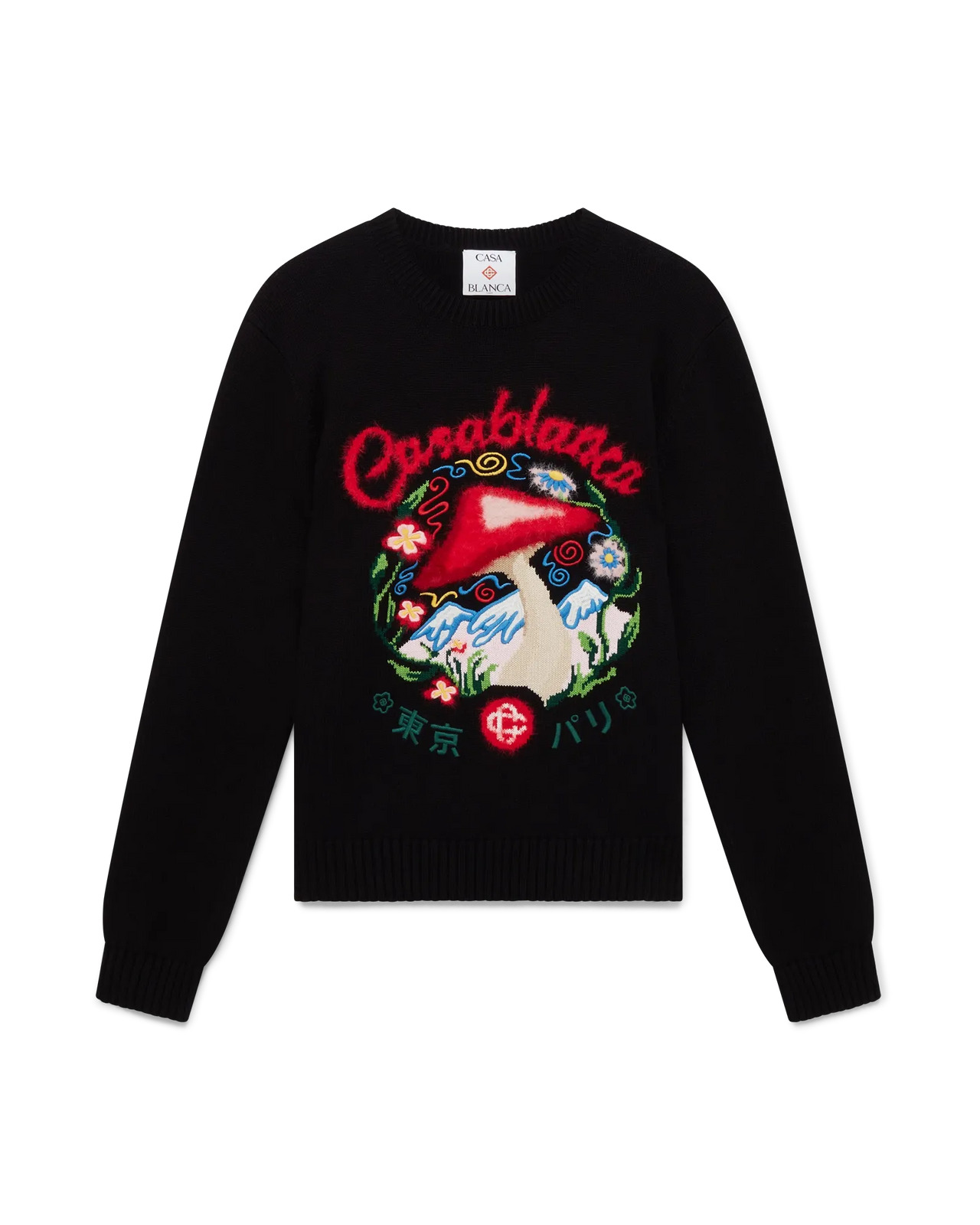 The cotton embroidered mushroom jumper is a long-sleeve design featuring one of the house's signature design elements - the mushroom - crafted from cotton fabric. Completed with a classic crew neck, ribbed cuffs and hem. - Cotton fabric - Main: 100% cotton - Embroidery: 100% polyester - Colour: black/multicoloured embroidery - Specialised dry clean only - Made in China - Relaxed fit - The model is 187cm/6'1 and is wearing a size M