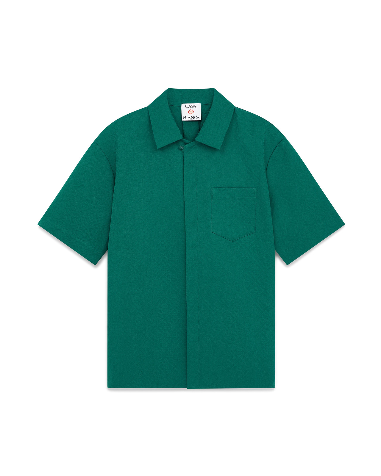 The cotton monogram jacquard short-sleeve shirt is a classic design crafted from a monogrammed cotton jacquard fabric featuring the house's Casablanca Montagne patch above the breast pocket. Completed with a Cuban collar, button closure, interlocking CC logo corozo buttons, and an inverted pleat at the back. - Cotton jacquard fabric - Main: 100% cotton - Colour: green - Specialised dry clean only - Made in Italy - Oversized fit - The model is 187cm/6'1 and is wearing a size M