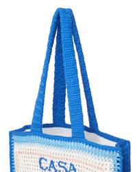 The Crochet bag is a knitted style crafted from crochet cotton fabric, and features a slouchy silhouette. Completed with an embroidered black logo and straps that allow the tote style to be worn over the shoulder or in the hand. - Crochet cotton fabric - Main: 100% cotton - Lining: 90% polyester 10% cotton - Cotton: blue gradient - Specialised dry clean only