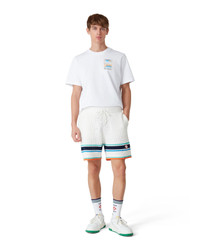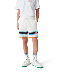 The crochet tennis shorts are a soft textured design crafted from knitted organic cotton fabric, featuring the house's signature diamond logo tying back to the capsule’s travel and vacation theme. Finished with a ribbed elasticated waistband with drawstring fastening, side pockets, and contrast stripe detail on the hem. - Crochet effect cotton fabric - 100% cotton - Tennis Stripe - Specialised dry clean only - The model is 185cm/6'1 and is wearing a size M - Exclusive to casablancaparis.com and selected retailers