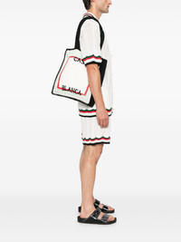 logo-embroidered tote bag Highlights - White - Two top handles - Main compartment - Stripe detailing Imported Composition Outer: Cotton 100% Lining: Lyocell 100% SIZE & FIT Model measurements Height 6 ft 2 in(1.87 m) Bust/Chest 37.79 in(96 cm) Hips 37.79 in(96 cm) Waist 30.31 in(77 cm) Measurement DEPTH 3.14 in(8 cm) HANDLE 24.8 in(63 cm) HEIGHT 14.17 in(36 cm) WIDTH 12.99 in(33 cm) Washing instructions Hand Wash