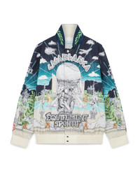 The Le Temple Du Sport leather crystal bomber jacket is made as part of the exclusive collaboration with Jeff Hamilton - it's a take on our tennis club with landscape and floating elements - depicting a very idealist, glory-to-sport layout. Crafted from wool, leather and crystals, featuring ancient Greek influence intertwined with futuristic elements and boasts lego-like designs adorned with crystal fusion, aligning with the seasonal artwork. Completed with leather cuffs and hem, a stand-up collar with the house's signature Laurel leaf artwork. - Leather and crystals - 100% leather - Embellishment: crystals - Le Temple Du Sport multicolour - Specialised dry clean only - Made in USA - Fits true to size, take your regular size - The model is 187cm/6’1 and is wearing a size M